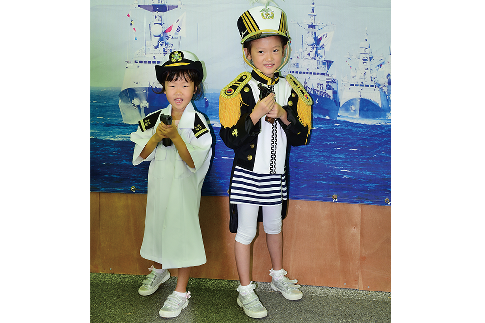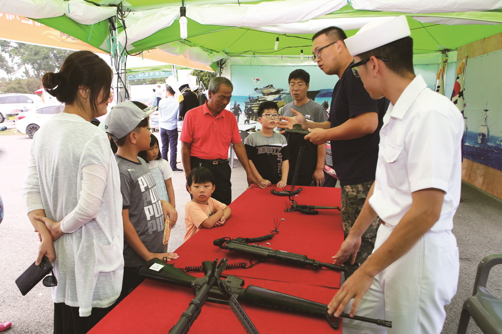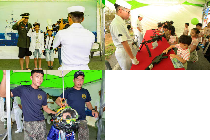 해군 홍보영상 상영, 해군복 입고 사진찍기, 장난감 총 모의 사격 등